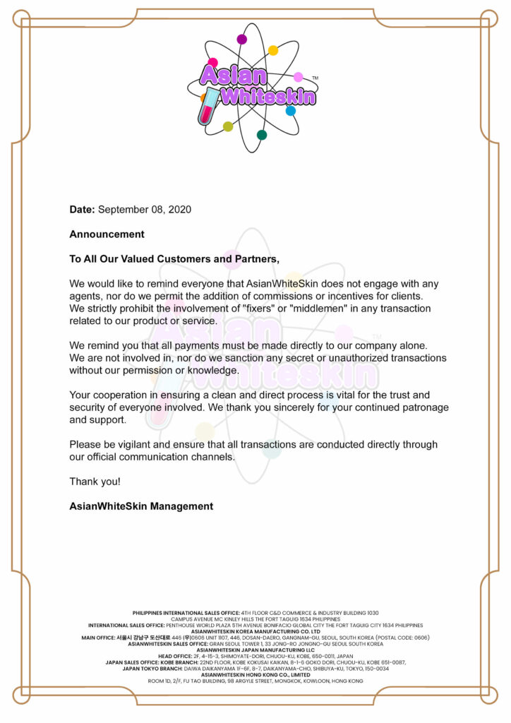 • Important Update: Changes to AsianWhiteSkin’s Operational PoliciesApril 28, 2025